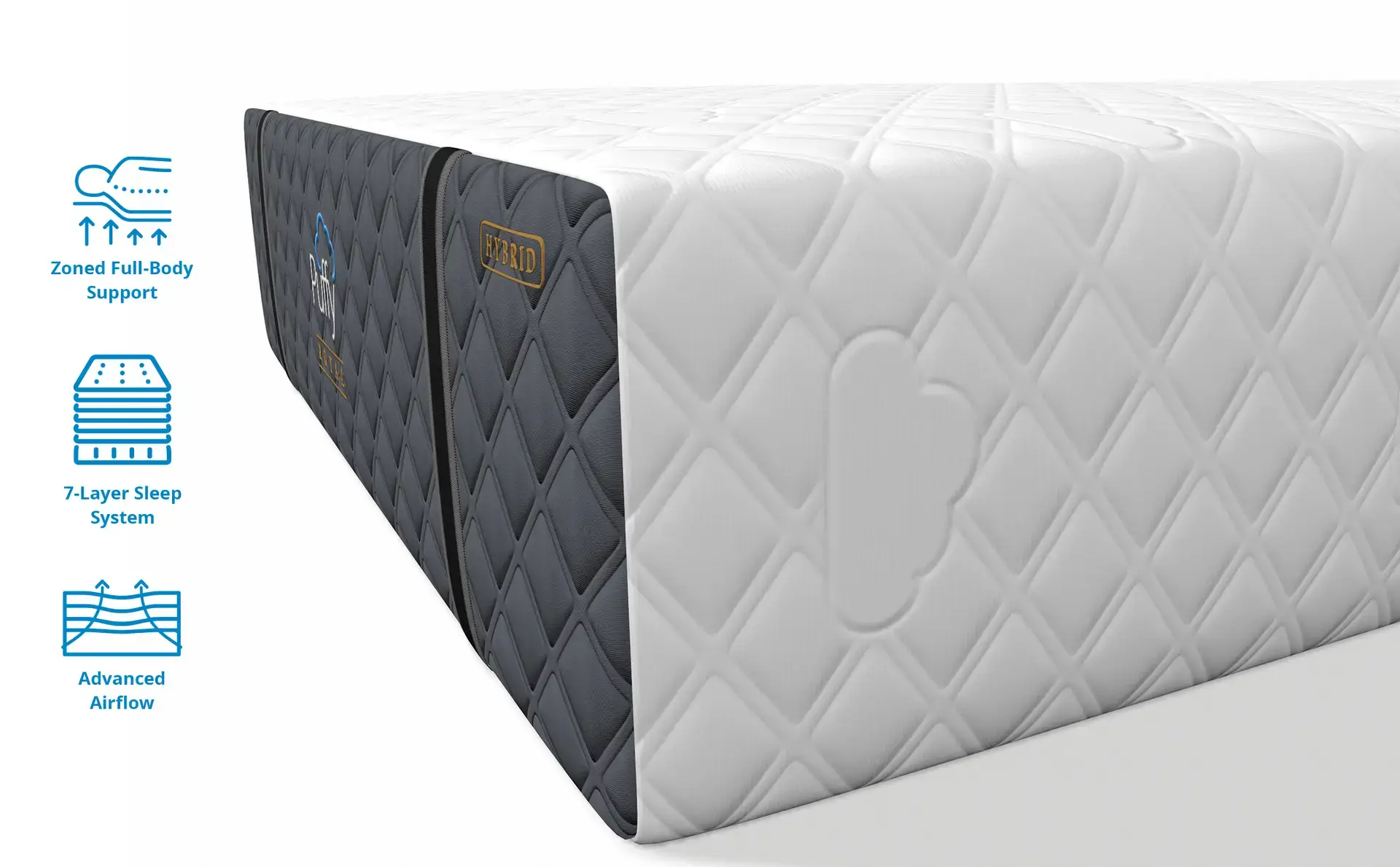 Premier luxury hybrid memory foam mattress with zoned full-body support that’s perfect for sleepers looking for unparalleled comfort, cooling, and stability.
